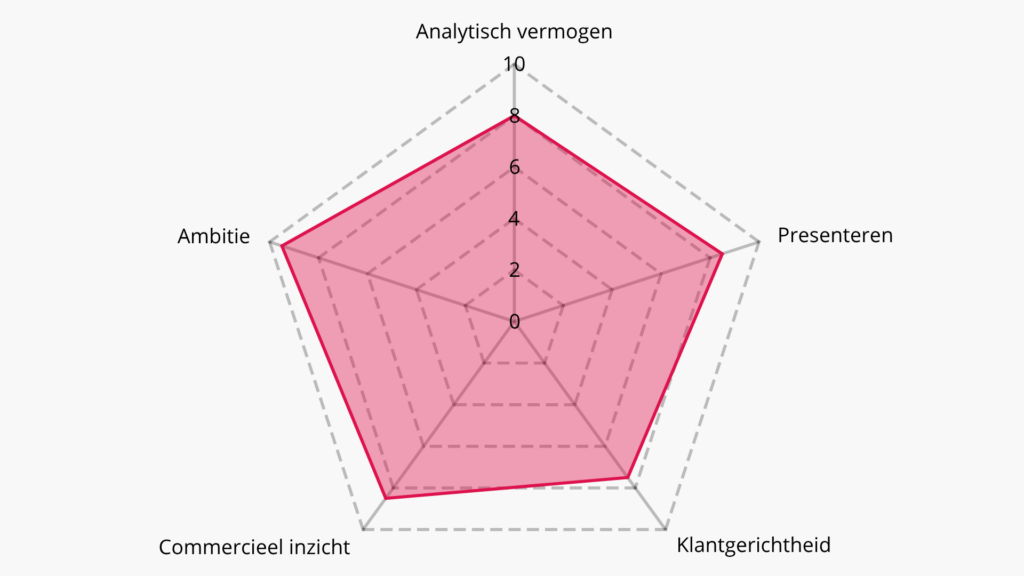 Mede dankzij mijn studie Commerciële Economie heb ik verschillende waardevolle vaardigheden ontwikkeld. Zo ben ik de afgelopen jaren sterk gegroeid in presenteren en heb ik mijn analytisch vermogen verder ontwikkeld. Daarnaast is mijn commerciële inzicht verbeterd en ben ik steeds klantgerichter gaan denken en handelen. Ook heb ik van nature altijd al veel ambitie gehad, en deze eigenschap is tijdens mijn studie alleen maar verder versterkt.